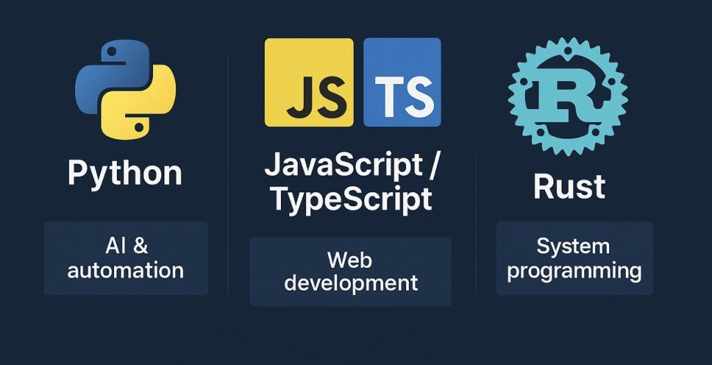 While many languages have their place, Python, JavaScript/TypeScript, and Rust stand out as the top three for 2026. They cover the most critical areas of modern technology: intelligence, experience, and security.