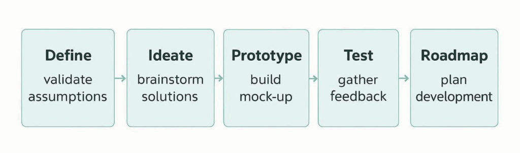 A well-executed PoC is lean but structured. It starts with defining the problem and aligning it with business goals. Teams must ask what problem they are solving, how success will be measured, and what resources are available. From there, they ideate solutions, explore feasibility, and compare approaches. A basic visualization—whether in the form of wireframes or simplified workflows—helps clarify direction. Testing with stakeholders provides feedback and exposes blind spots. Finally, the learnings are compiled into a roadmap that defines requirements, risks, and the logical next steps for development.